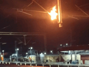 राजस्थान के पाली जिले में रविवार रात एक बड़ा हादसा टल गया जब रेलवे स्टेशन के पास चलती ट्रेन के ऊपर की बिजली लाइन (ओवरहेड वायर) में अचानक आग लग गई। घटना की जानकारी मिलते ही रेलवे अधिकारियों में हड़कंप मच गया। तुरंत बिजली आपूर्ति बंद की गई और यात्रियों की सुरक्षा के लिए ट्रेन के कोच खाली करवाए गए। आग लगने की वजह शॉर्ट सर्किट बताई जा रही है।